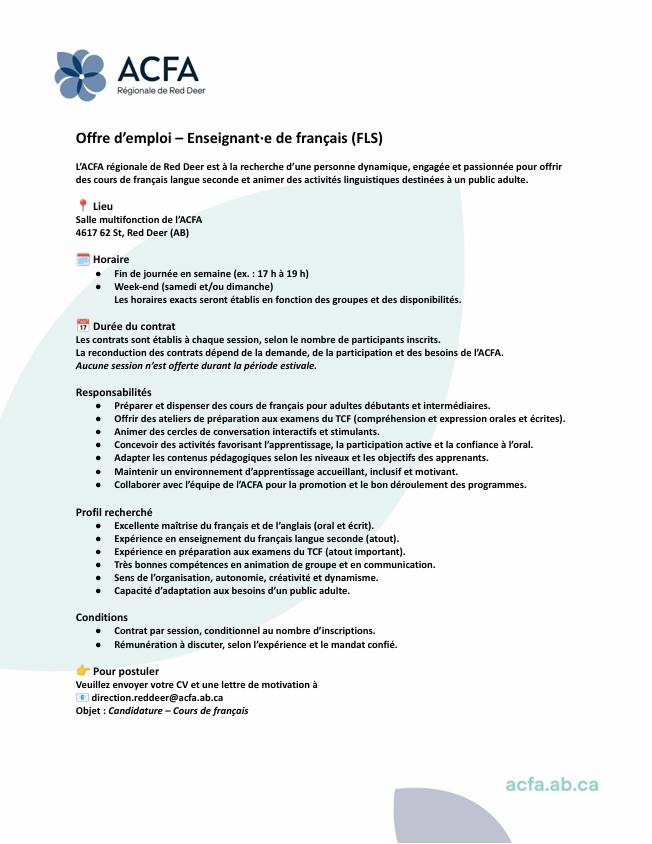 • Collaborer avec l’équipe de l’ACFA pour la promotion et le bon déroulement des programmes